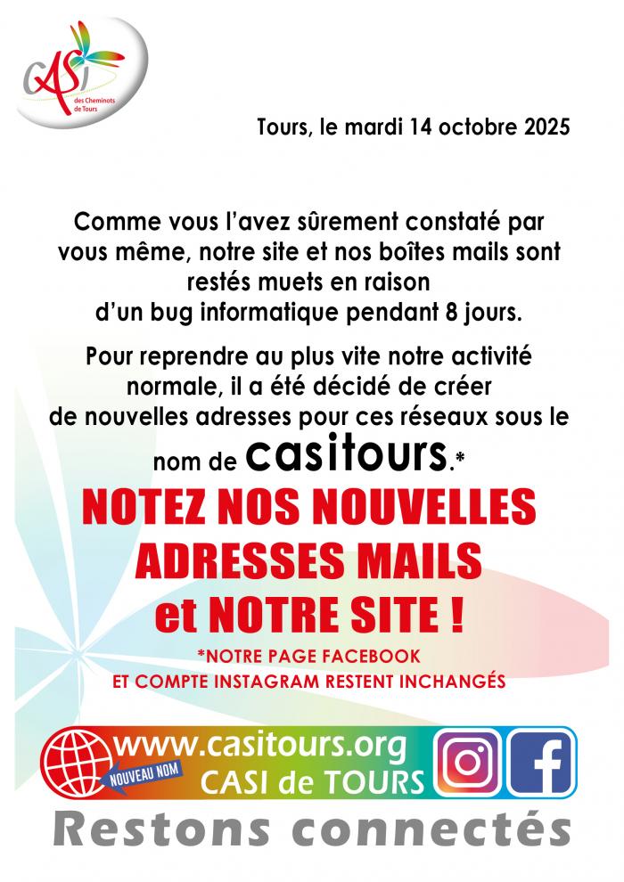 CHANGEMENT ADRESSES BOITES MAILS ET SITE DU CASI