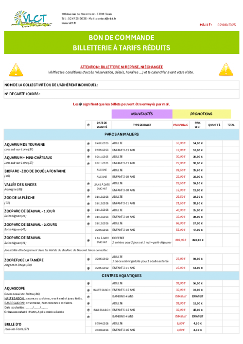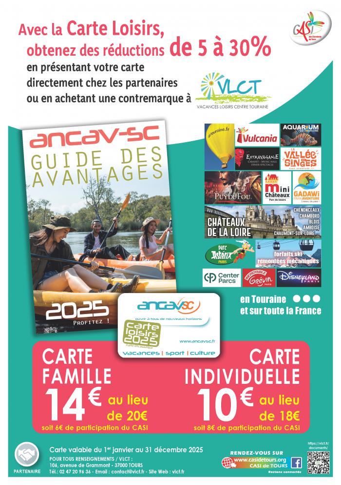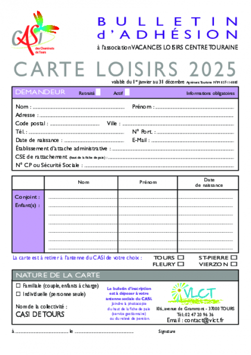 - Bon de commande de la CARTE LOISIRS auprès de votre CASI,
