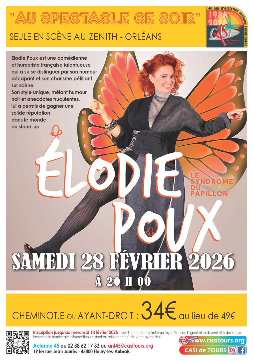 À force de s'entendre dire qu'il n'y a plus de places pour venir la voir en spectacle, Elodie Poux a décidé de rajouter des dates de son spectacle Le Syndrome du Papillon avec en bonus, quelques petites surprises, à partir de la fin 2024 et pousse les murs dans une version XXL pour terminer en beauté avec une tournée de Zenith de janvier à avril 2025 et ainsi vérifier si l'adage dit vrai "plus on est de poux, plus on rit !"