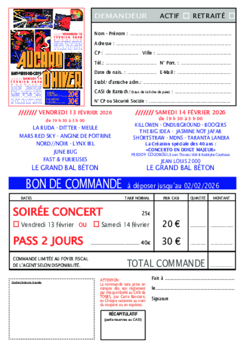 Vendredi 13 et samedi 14 février 2026 - Commander jusqu'au 2 février