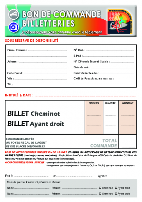 Commande limitée à 2 places du foyer fiscal de l'agent.