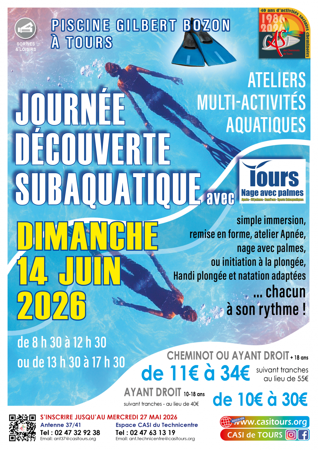 • Initiation aux différents ateliers: plongée, nage avec palmes, apnée, sauvetage, hydrospeed, fit'palmes, handi.