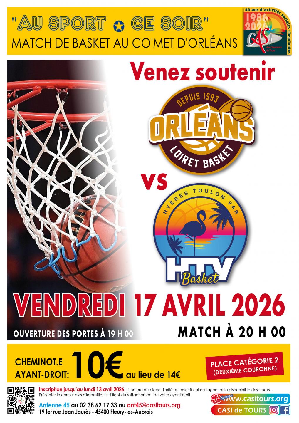 Vendredi 17 avril 2026 - S'inscrire jusqu'au lundi 13 avril avec l'Antenne 45