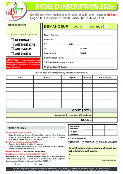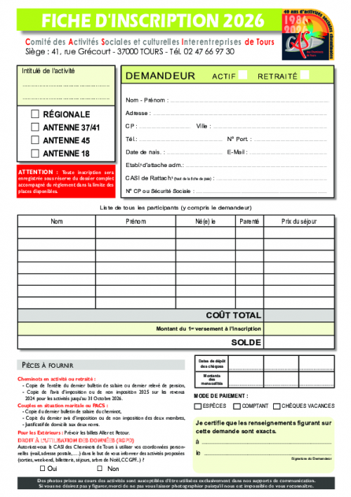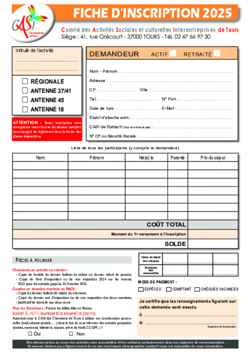Fiche d'inscription à une activité ou un séjour (fichier pdf plus bas).