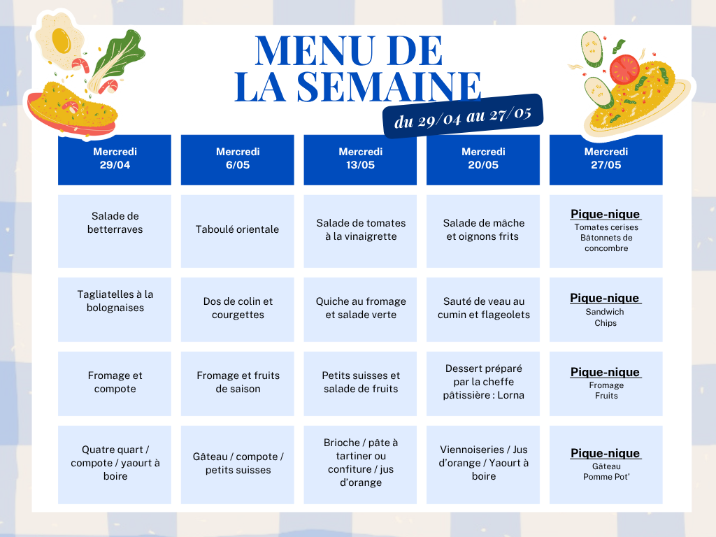 Les repas sont élaborés à la cuisine du restaurant d’entreprise et le temps du repas fait partie intégrante du projet.
