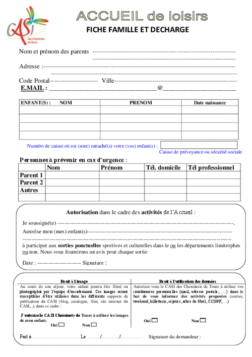 Fiche sanitaire Accueil de Loisirs 2025 / 2026