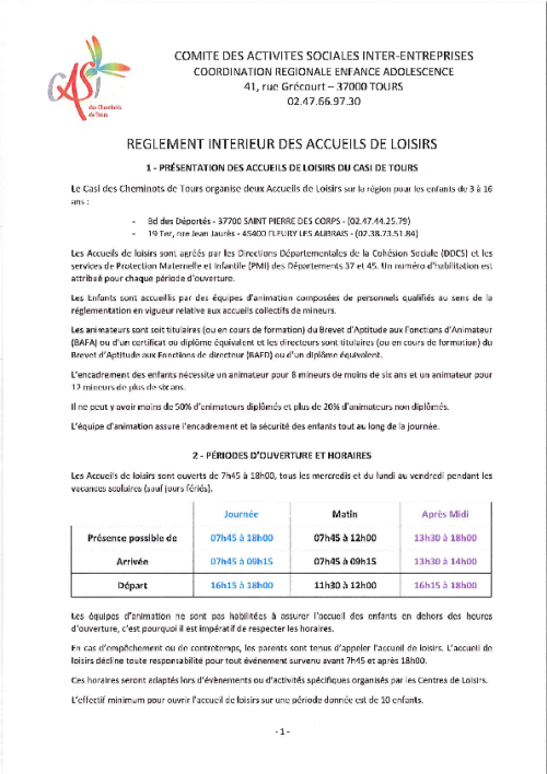 L'accueil de loisirs est ouvert de 07 h 45 à 18 h 00 (sauf jours fériés).
